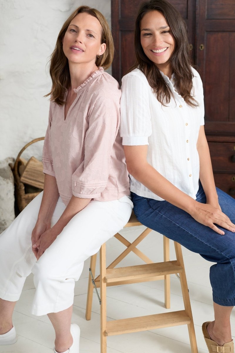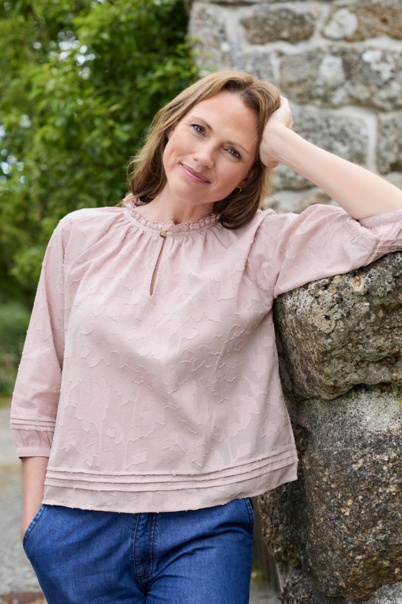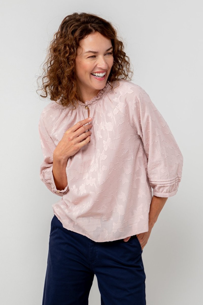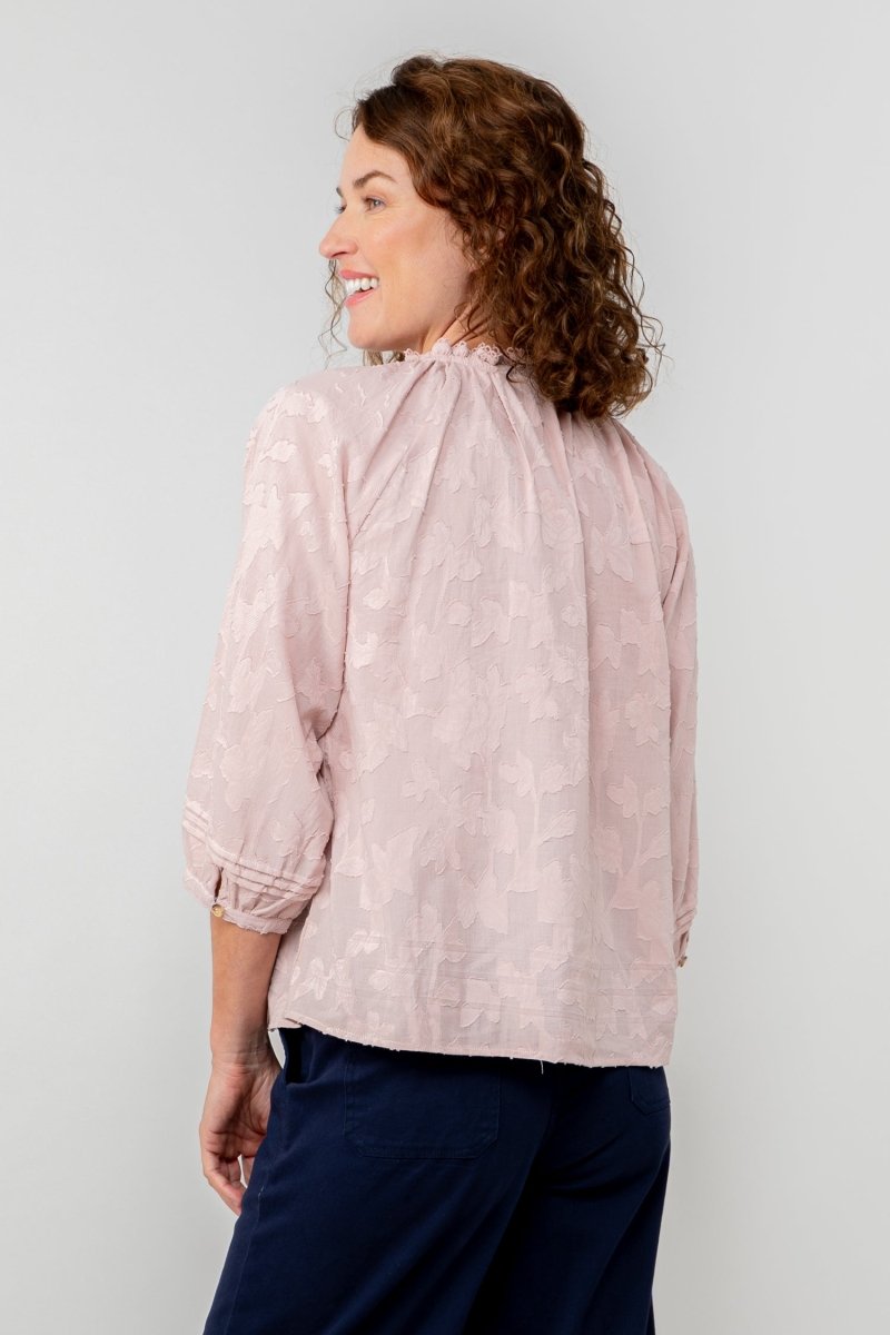 The Zoe Blouse is a beautiful cotton jacquard top with delicate detailing.